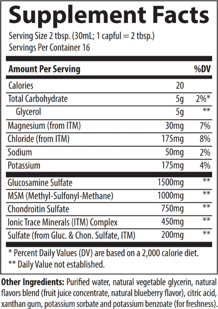 Glucosamine/Chondroitin/MSM (Methyl-sulfonyl-methane) with ConcenTrace is a dietary supplement that provides nutritional support for joints and connective tissue. Glucosamine sulfate combined with chondroitin supplies cartilage with the vital building blocks it needs to stay supple and healthy.
