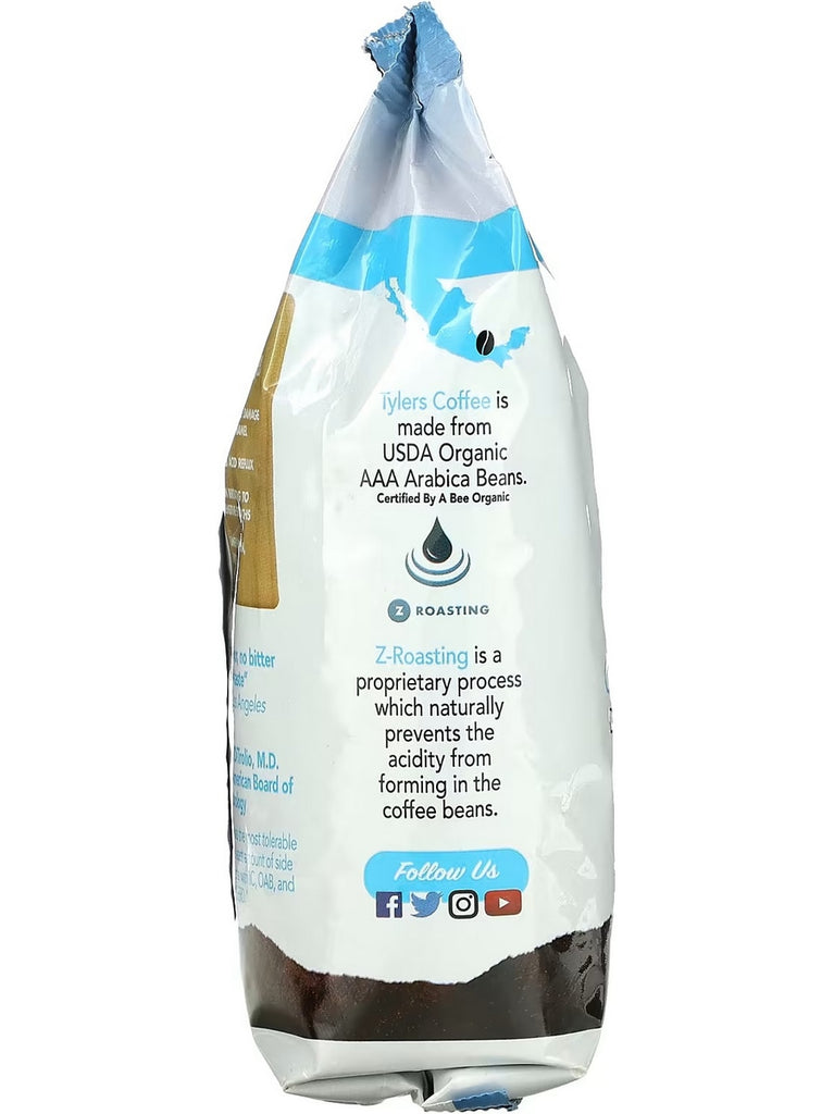 Introducing Tylers Acid-Free Coffee: the ultimate in smooth, delicious flavor. Our USDA Certified Organic beans are roasted carefully to eliminate acidity, giving you a gentle, satisfying cup without the discomfort. Enjoy the pure pleasure of coffee, hassle-free, with Tylers.