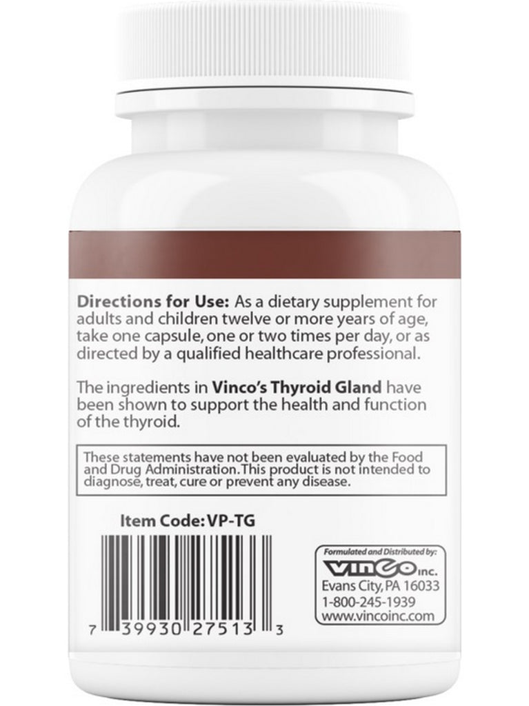 Vinco’s Thyroid Gland has been shown to support the health and function of the thyroid, specifically for those with less than optimal gland functioning who do not make enough hormone on their own. Freeze-dried bovine thyroid glands are sourced from grass-fed, free range New Zealand cattle. No chemical solvents or heat are used to maintain the quality of the product.