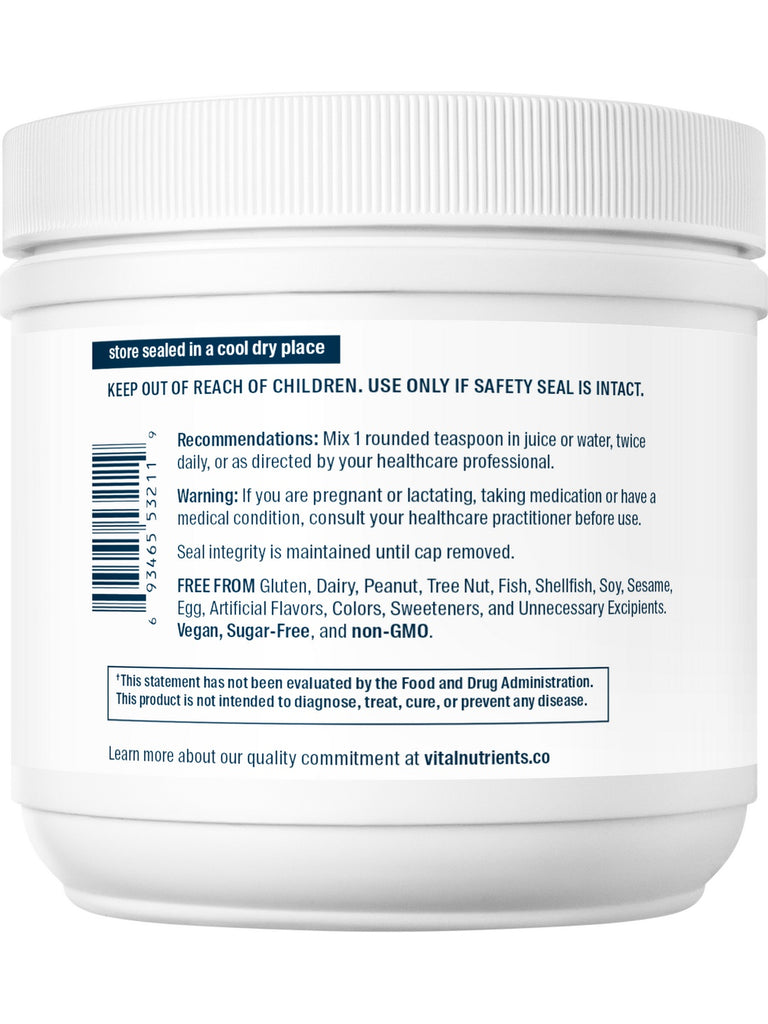 Inositol is a compound found in a wide range of tissues, with higher concentrations in the heart and brain. Inositol Powder may be used to help support and maintain positive mood. It promotes healthy neurotransmitter metabolism and helps reduce daily stress and occasional anxiety. Inositol Powder may be beneficial in the transport of cholesterol out of the liver to help maintain already normal-range cholesterol levels. It may also help maintain healthy blood sugar levels and ovarian function. Vital Nutrients’ inositol supplement is offered in a powder form which readily dissolves in water and has a slightly sweet taste.