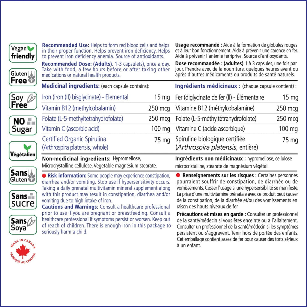 Daily Iron + Spirulina was developed based on VITALITY feedback on Power Iron + Spirulina. Daily Iron is a 15 mg maintenance iron with lower dose folate and vitamin B12 to defend iron levels following use of Power Iron. Also ideal with prenatal supplements, for men or women with high sensitivity to iron.