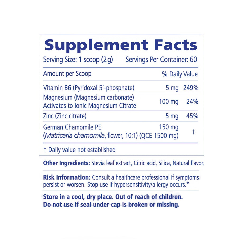 Magnesium + Chamomile naturally helps kids relax. When combined with hot water the magnesium activates to highly absorbable ionic magnesium citrate and blends with German chamomile into a tasty drink for kids. The calming properties promote evening relaxation and a better sleep. VITALITY is free of melatonin and will not interact with a child's natural production of melatonin to support their long-term sleep patterns. Sugar Free.