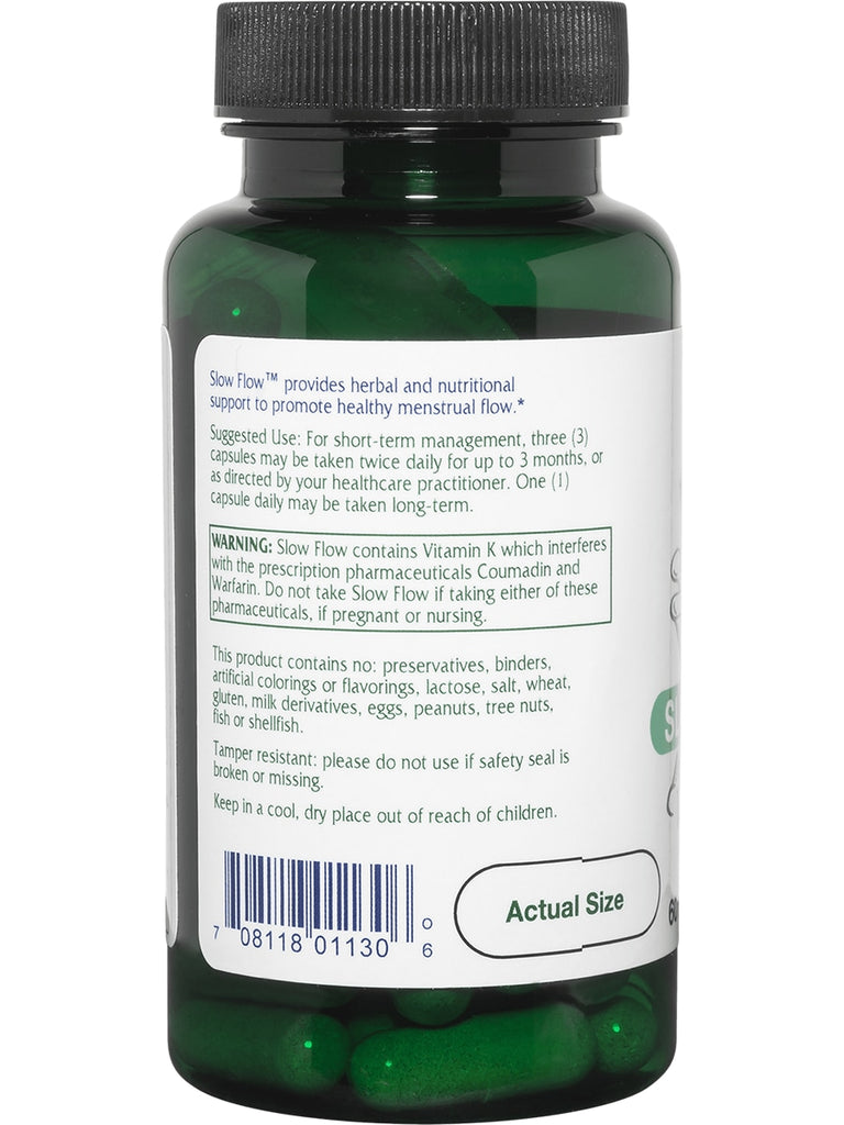 Slow Flow uses astringent herbs, uterine tonics and nutrients to support normal menstrual flow.