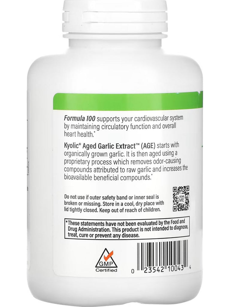 Kyolic Aged Garlic Extract Formula 100 for Cardiovascular Health contains 600 mg of AGE per serving. Taken daily, this original formula supports your cardiovascular system by maintaining circulatory function and overall heart health.