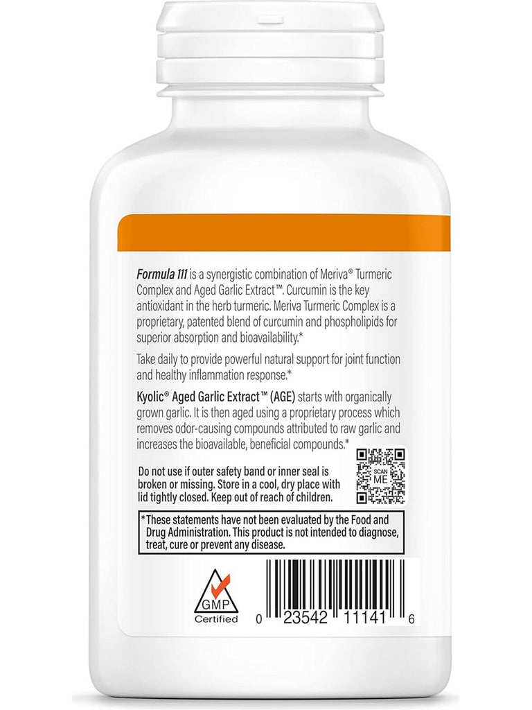 Kyolic Aged Garlic Extract Curcumin Formula contains 300 mg of AGE and 1000 mg of Meriva Turmeric Complex per serving, which is a proprietary blend of curcumin and phosphatidylcholine, for a healthy inflammation response. This proprietary and patented Meriva blend allows for superior absorption and bioavailability compared to other unformulated curcumin extracts. Taken daily this formula provides powerful, natural support for joint function, anti-inflammatory effects, cardiovascular health as well as a variety of other nutritional benefits.