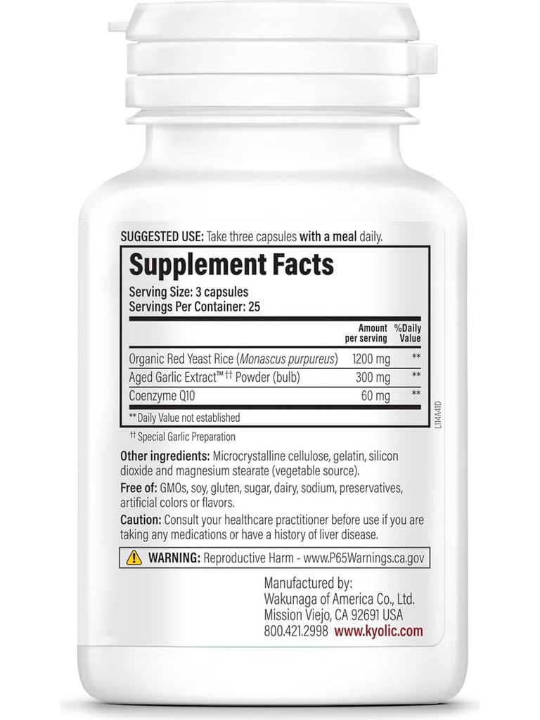 Wakunaga, Kyolic, Red Yeast Rice CoQ10, Formula 114, 75 Capsules
