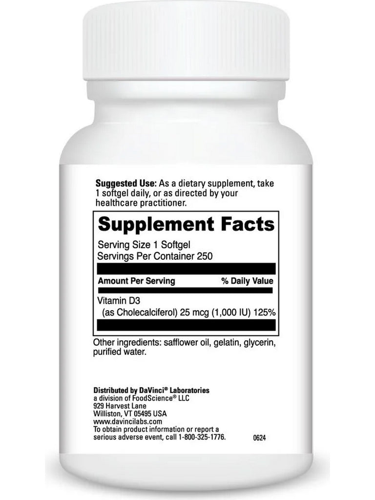 DaVinci Laboratories, Vitamin D3 1000 IU, 250 Softgels