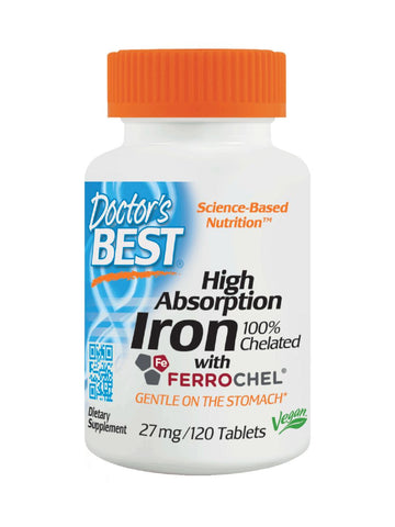 Doctor's Best, High Absorption Iron, 27 mg, 120 Tablets