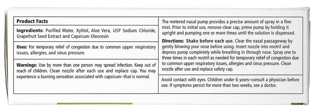 Historically, capsicum has been used as a natural antihistamine and shown to be effective in clearing sinus and nasal congestion. Aloe has been added to the solution for its profound moisturizing, soothing, and healing properties.