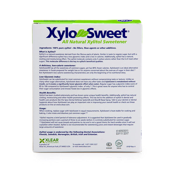 XyloSweet, which is made of 100% xylitol, is different. It has the same sweetness as sugar and has 40% fewer calories. It also has a glycemic index of 7, making it a great sugar replacement.