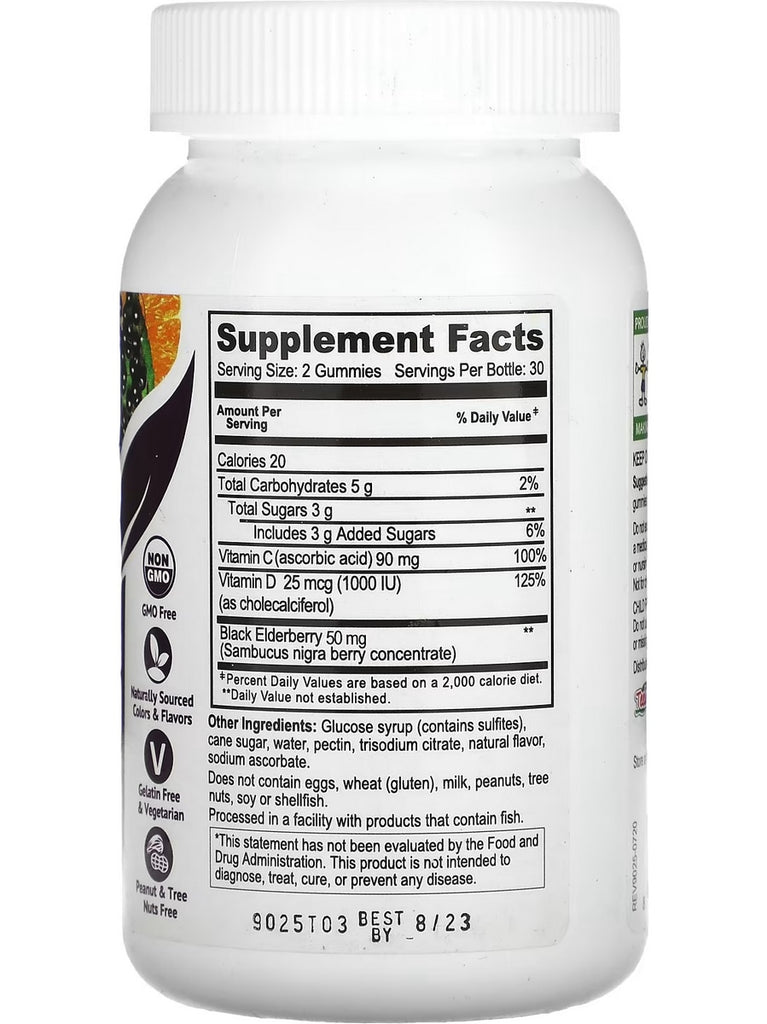 These gummies combine the power of elderberry extract with vitamins C and D to give your child a complete immune support supplement. They're made with real elderberry extract, an antioxidant that gives them their delicious taste.