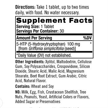 Natrol 5-HTP 100 mg Fast Dissolve delivers natural mood support in a delicious, wild berry flavored tab. 5-HTP is a natural, plant-derived source of an amino acid. This fast-dissolve formula delivers unique, rapid dissolve technology that helps promote fast absorption. Improve your mood with this delicious, easy-to-use tab.