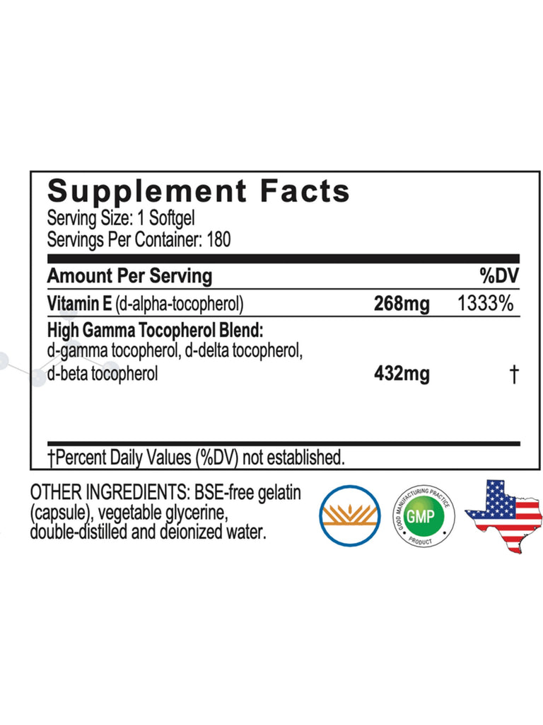 Each softgel contains a pure, concentrated tocopherol mixture containing 400 International Units (268mg) of d-alpha tocopherol with a minimum 300mg of d-gamma tocopherol and the added benefits of both delta and d-beta tocopherols. UNIQUE E provides the optimum ratio of tocopherols to deliver the maximum health benefits.