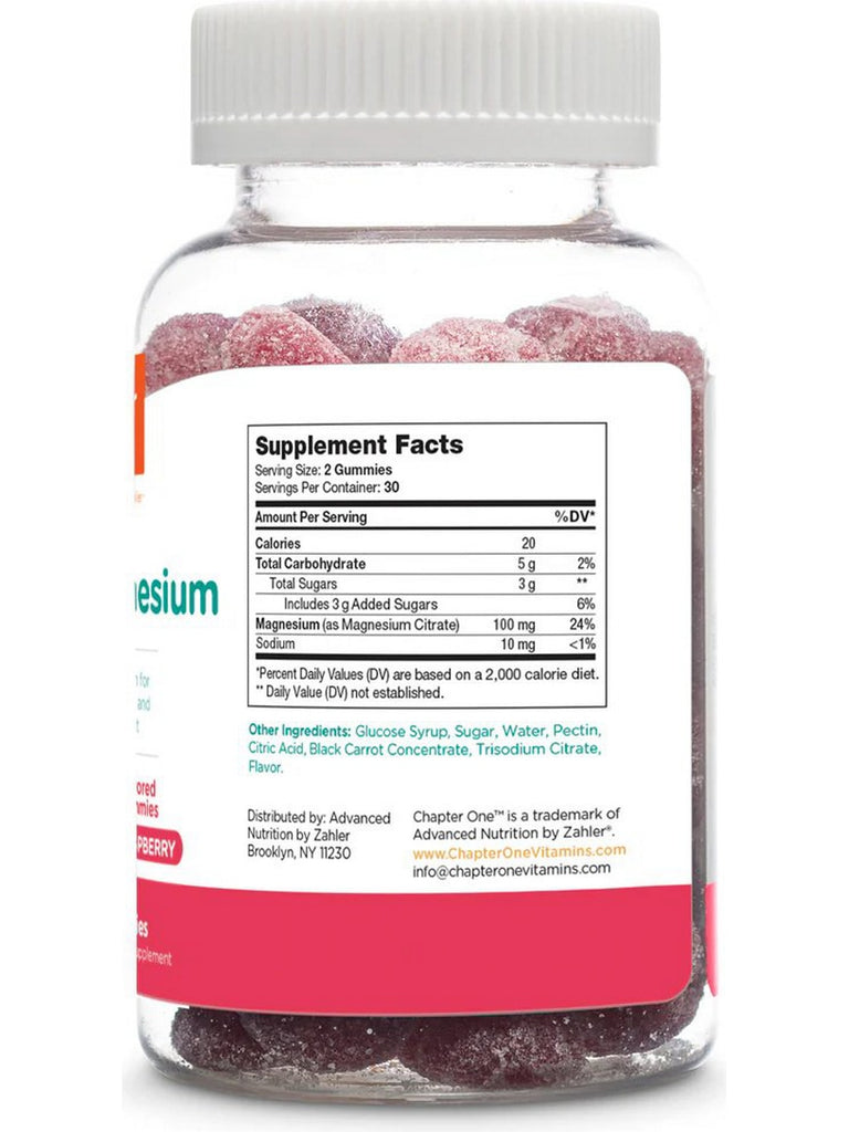 Chapter One Kosher Magnesium Gummies for kids contain Magnesium Citrate, which supports many functions in the body, most notably the muscles and nerves. Magnesium is also popular for its calming benefits, as well as keeping the bones strong and aiding with occasional constipation. This formula provides Magnesium, a necessary nutrient, in a delicious-tasting gummy.