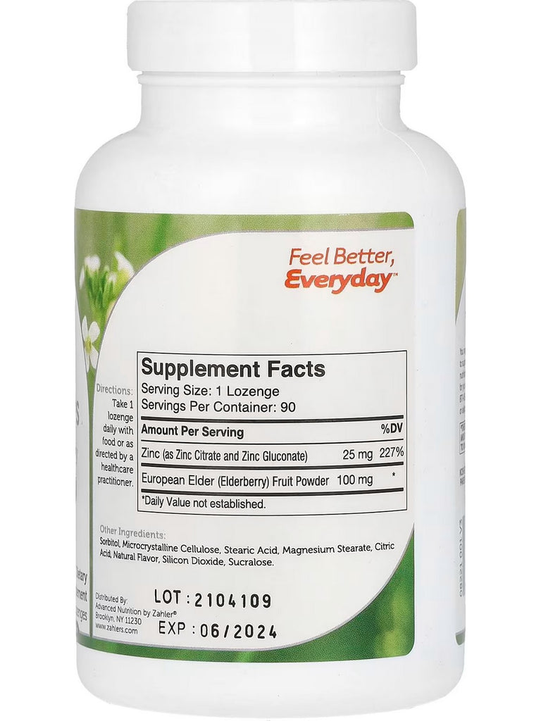 Advanced Nutrition by Zahler, Zinc + Elderberry Lozenges, 90 Lozenges