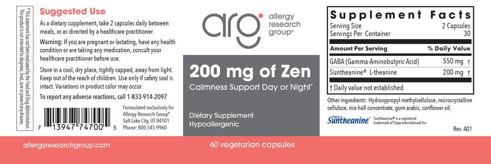 Allergy Research Group, 200 mg of Zen, 60 Vegetarian Capsules