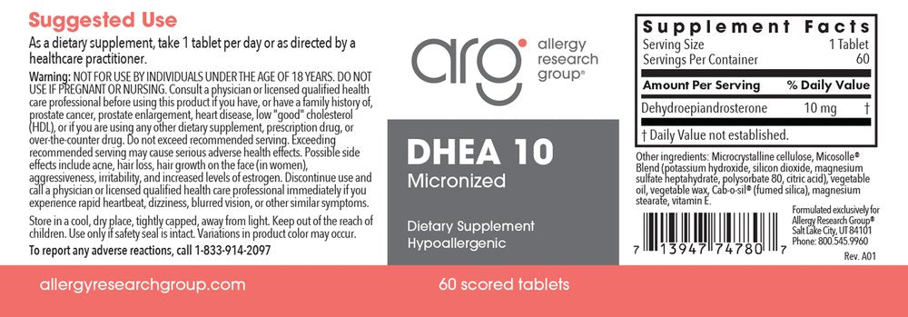Allergy Research Group, DHEA 10 Micronized Lipid Matrix, 60 Scored Tablets