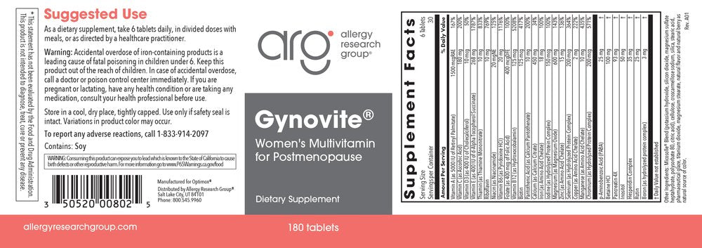 Gynovite is a complete nutritional supplement formulated for postmenopausal complaints. This supplement emphasizes magnesium over calcium.