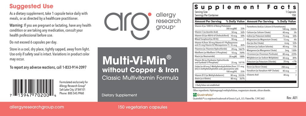 Allergy Research Group, Multi-Vi-Min without Copper & Iron, 150 Vegetarian Capsules