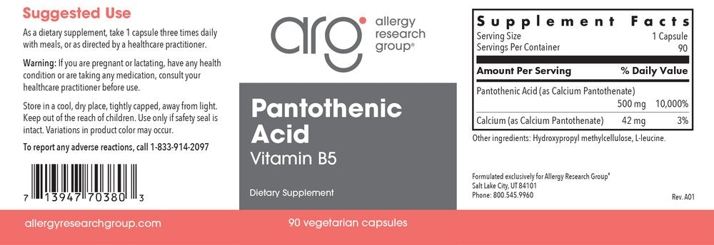 Allergy Research Group, Pantothenic Acid Vitamin B5, 90 Vegetarian Capsules