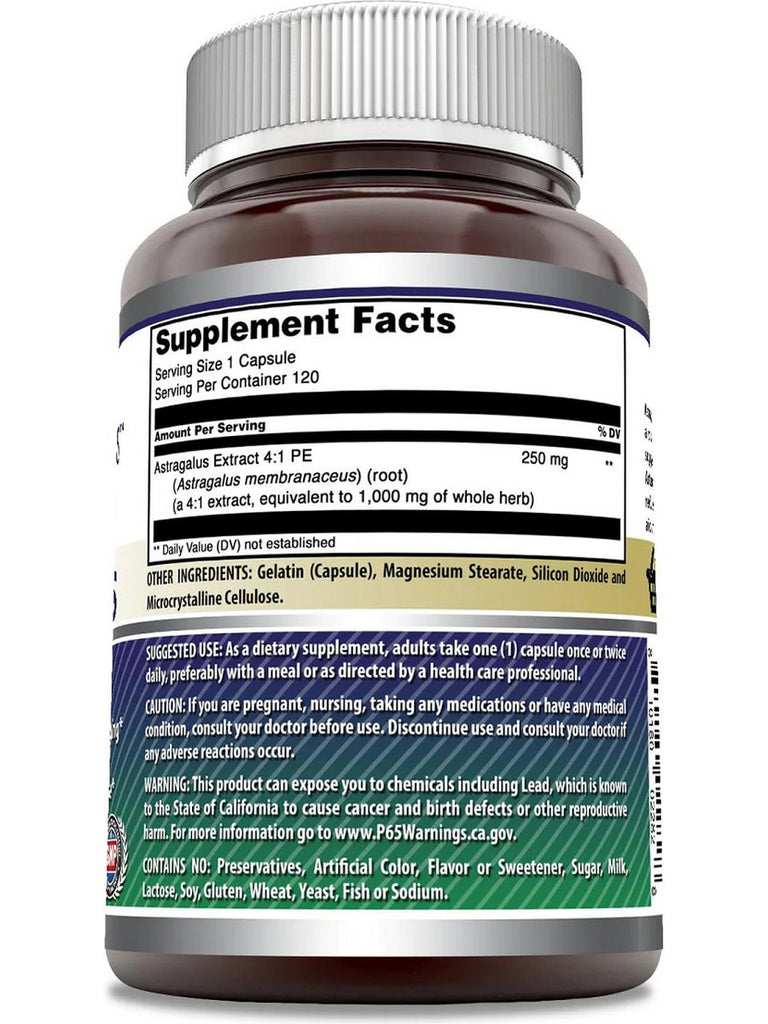 Astragalus has been used in traditional Chinese remedies for centuries due to its incredible antioxidants and anti-inflammatories properties and numerous health benefits. It is primarily used to boost the body's immune system and promote heart health. Amazing Formulas Astragalus dietary supplement is made from potent ‘Astragalus Membranaceus’ Plant Root 4:1 Extract. Each capsule provides 1,000 milligrams of Astragalus.
