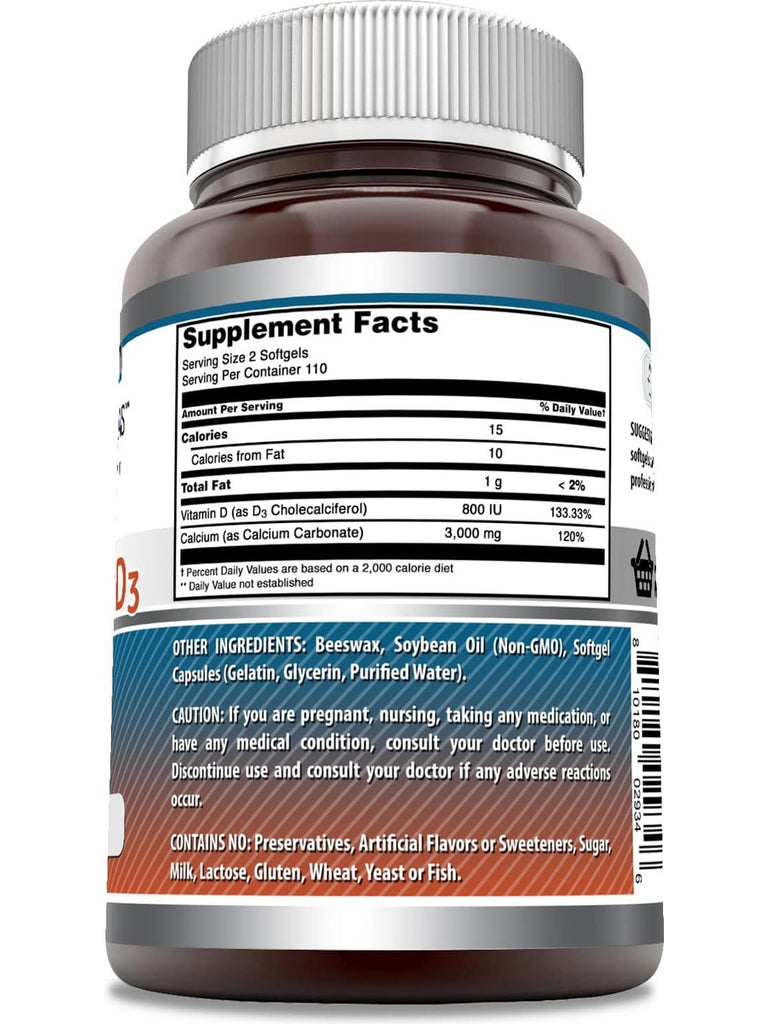 - Support A Healthy Cardiovascular System With every serving of 2softgels of our Calcium + Vitamin D3 dietary supplement, you receive an optimal dose of: 1200 mg of Calcium (as calcium carbonate)& 1000 IU of Vitamin D (as cholecalciferol) Support bone health and experience the vast array of benefits of Calcium + Vitamin D3 with Amazing Formulas dietary supplement!