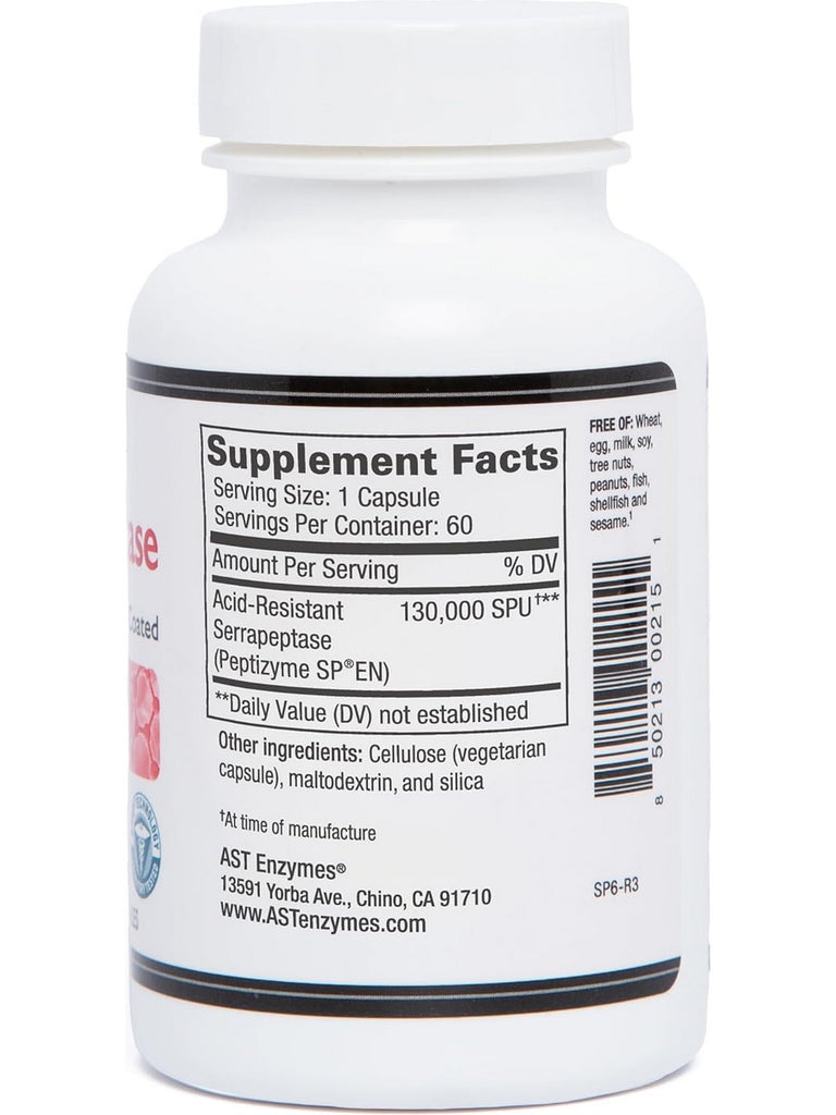 AST Enzymes, Serrapeptase 130,000 SPU, 60 Vegetarian Capsules