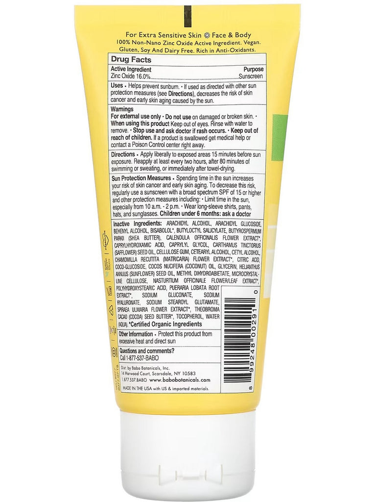Babo Botanicals, 30 SPF Clear Zinc Sun Screen Lotion, Unscented, 3 fl oz