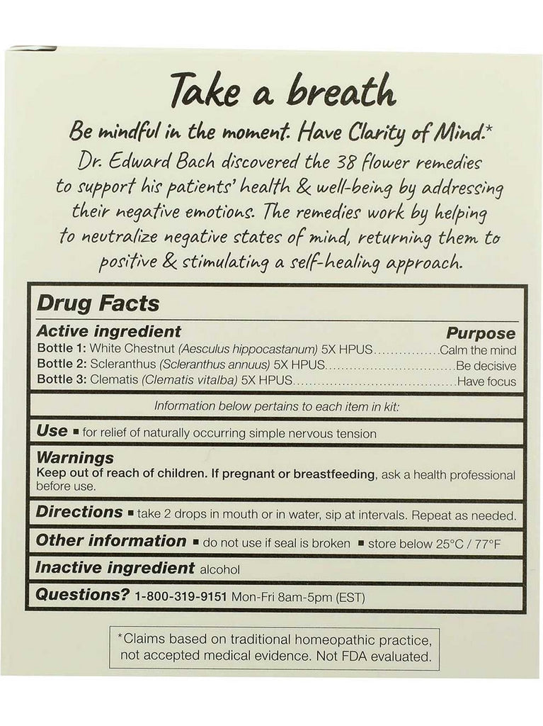 Bach Original Flower Essences, Clarity of Mind Focus Kit, 3 Droppers (0.7 fl oz each)