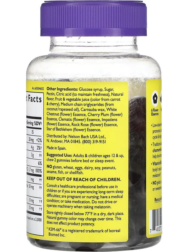Bach Original Flower Essences, Rescue Plus, Sleep and Stress Support, Blueberry with other natural flavors, 60 Vegan Gummies