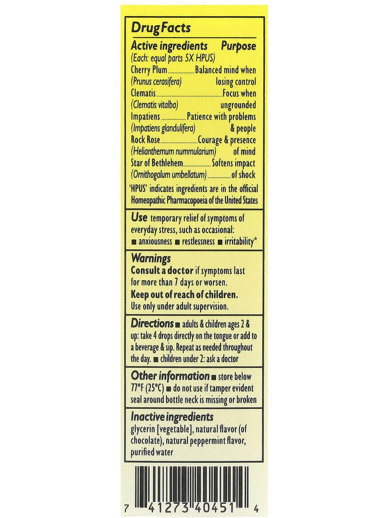 Bach Original Flower Essences, Rescue Remedy Dropper, Chocolate and Peppermint, Non-Alcohol, 20 ml