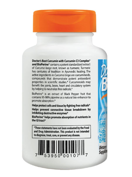 Doctors Best, High Absorption Curcumin contains a potent standardized extract of Curcuma longa root, known as turmeric. Turmeric has centuries of tradition in Ayurvedic healing. The active ingredients in Curcuma longa are curcuminoids, compounds that demonstrate potent antioxidant properties in scientific studies. Curcuminoids may benefit the joints, brain, heart and circulatory system by helping to neutralize free radicals.