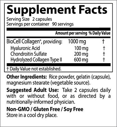 Hyaluronic Acid and Collagen are vital structural components of the skin that decline as we age, and are partly responsible for the skin's moisture, suppleness and elasticity. BioCell Collagen IIcontains key components that can help support healthy skin and joint function.