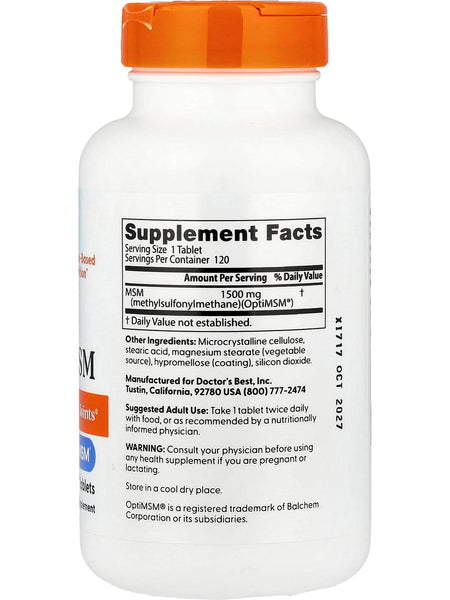 Doctor's Best, MSM, 1500 mg, 120 Tablets