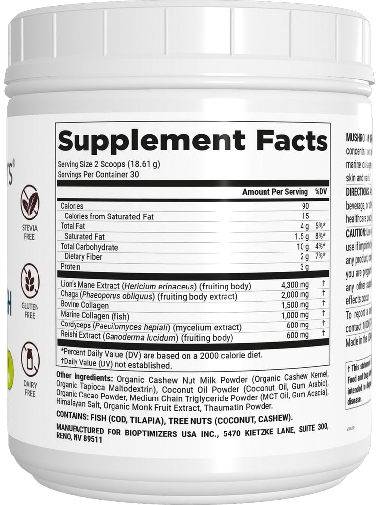 BIOptimizers, Mushroom Breakthrough, Chocolicious 30 Servings, 19.7 oz