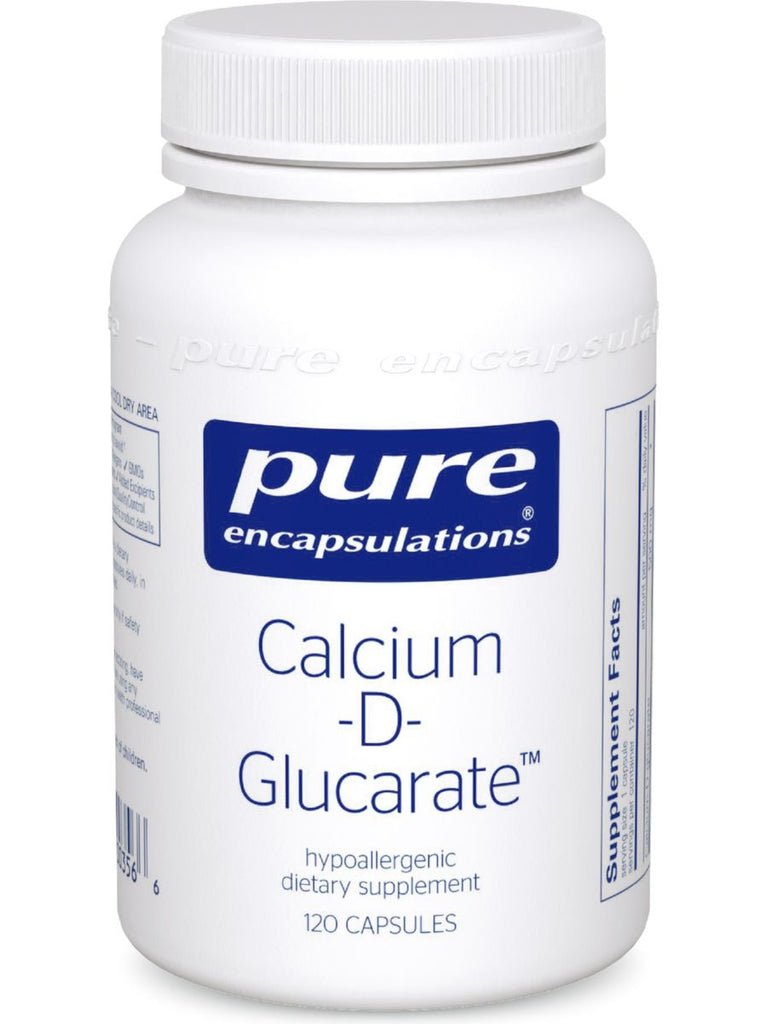 Calcium-d-glucarate is a chemical, similar to glucaric acid, which helps cleanse the body. It is naturally produced in the body in small amounts. Pure Encapsulations patented Calcium-D-Glucarate nutritionally supports the body's natural ability to cleanse endogenous and environmental compounds and to promote cellular health for tissues including the liver, prostate, lung, breast and colon.