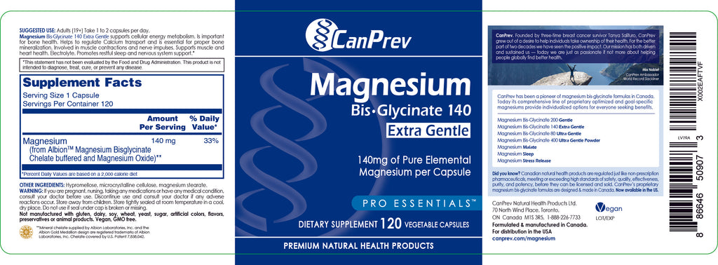 CanPrev, Magnesium Bis-Glycinate 140 Extra Gentle, 140 mg, 120 Vegetable Capsules