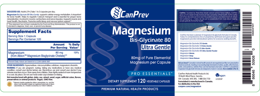 CanPrev, Magnesium Bis-Glycinate 80 Ultra Gentle, 80 mg, 120 Vegetable Capsules