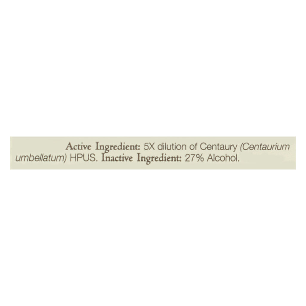 ACTIVE INGREDIENTS: 5x dilution of Centaurium Umbellatum HPUS. INACTIVE INGREDIENTS: 27% Alcohol.