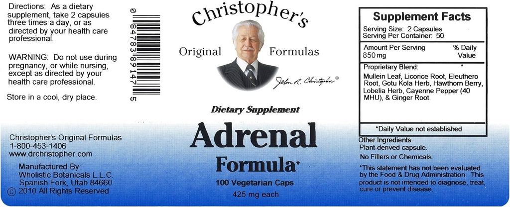 Christopher's Original Formulas, Adrenal Formula, 100 Vegetarian Caps
