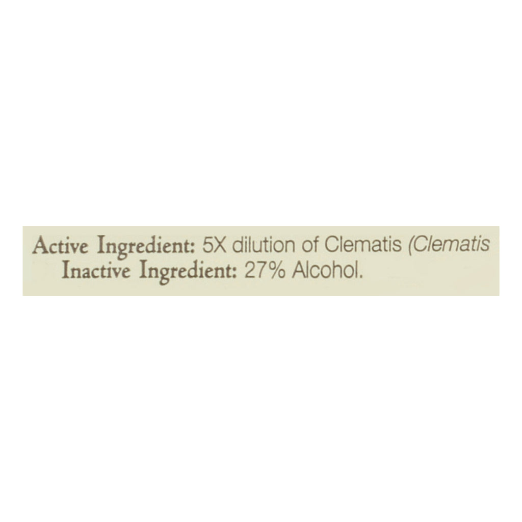 ACTIVE INGREDIENTS: 5x dilution of Clematis vitalba HPUS. INACTIVE INGREDIENTS: 27% Alcohol.
