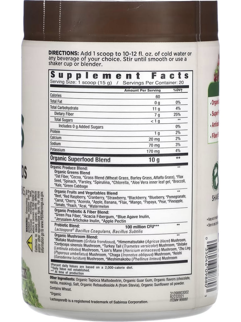 Country Farms, Super Greens, Alkalizing Formula, Chocolate, 10.6 oz