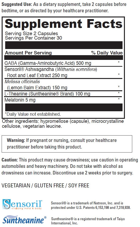 As a dietary supplement, take 2 capsules before bedtime, or as directed by your healthcare practitioner.