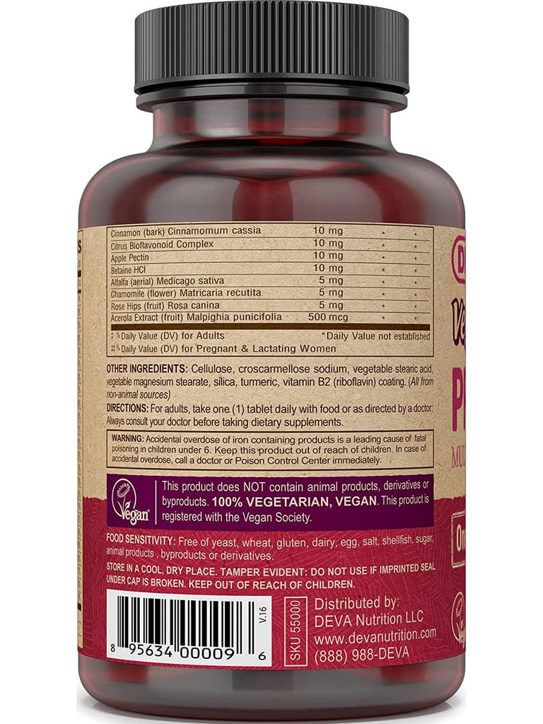 DEVA Vegan Prenatal Multivitamin is 100% animal-free and guaranteed for purity, freshness, and labeled potency. Remember all DEVA Products are 100% vegan, vegetarian and are registered by the Vegan Society, the non-profit organization that actually invented the word "vegan"