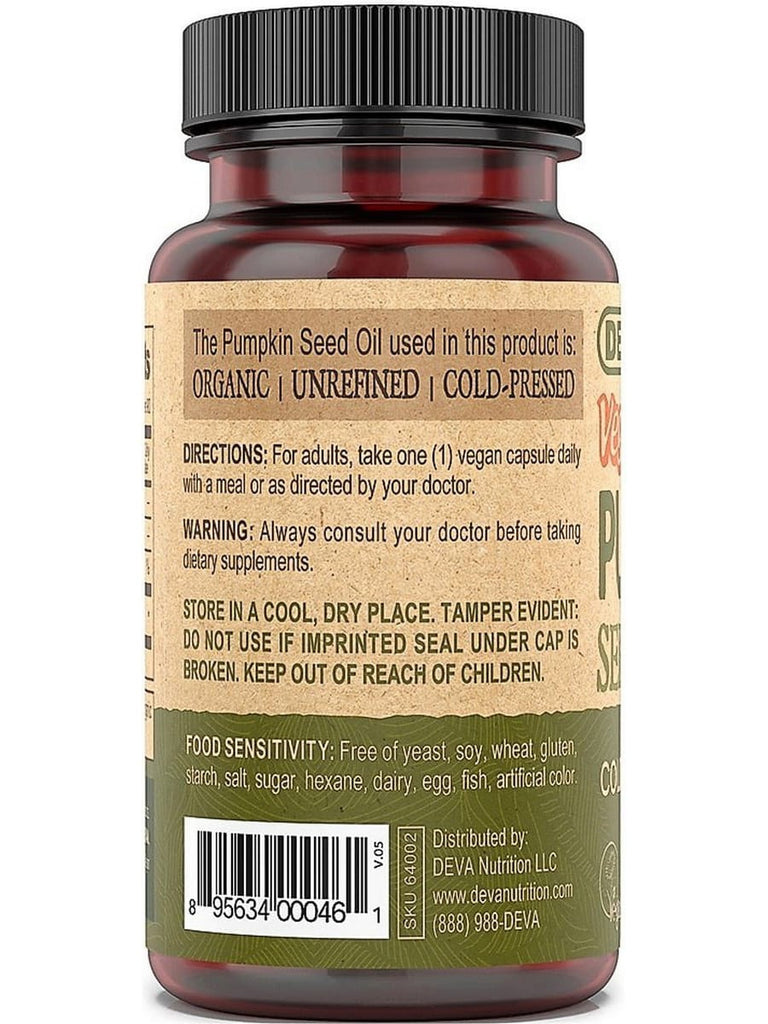 DEVA Vegan Pumpkin Seed Oil is 100% animal free, and guaranteed for purity, freshness and labeled potency.
