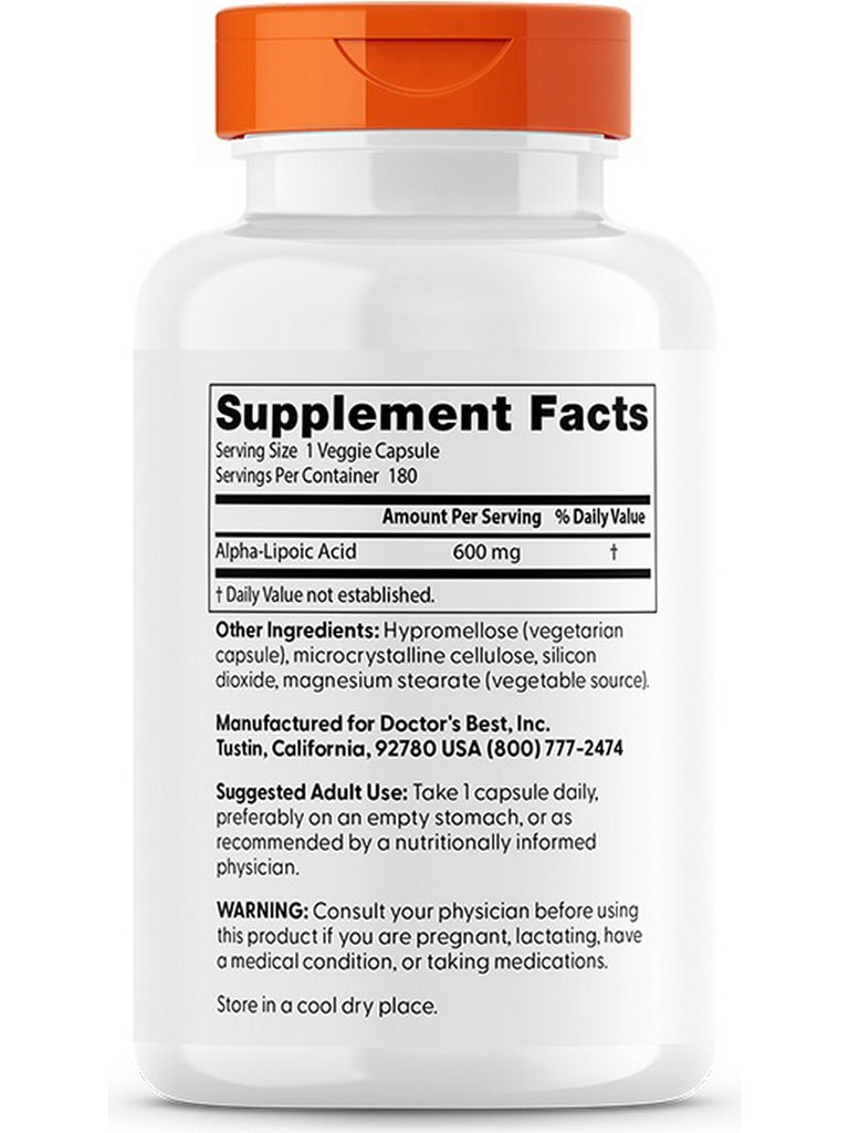Doctor's Best Alpha-Lipoic Acid 600, 600 mg, 180 Veggie Caps