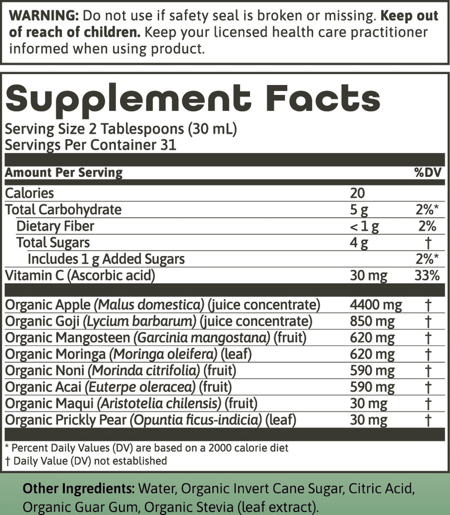 Certified organic, our powerful blend provides astonishing amounts of nutrition in each 2-tablespoon serving, and may help support healthy: