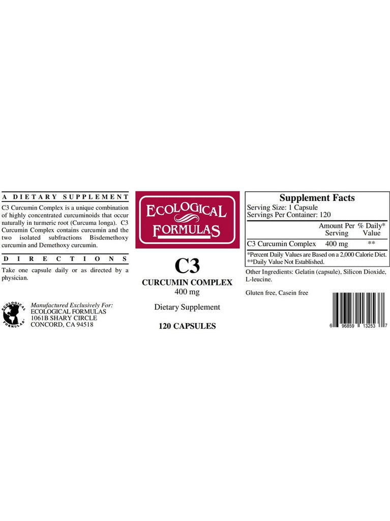 Ecological Formulas, C3 Curcumin Complex, 400 mg, 120 Capsules