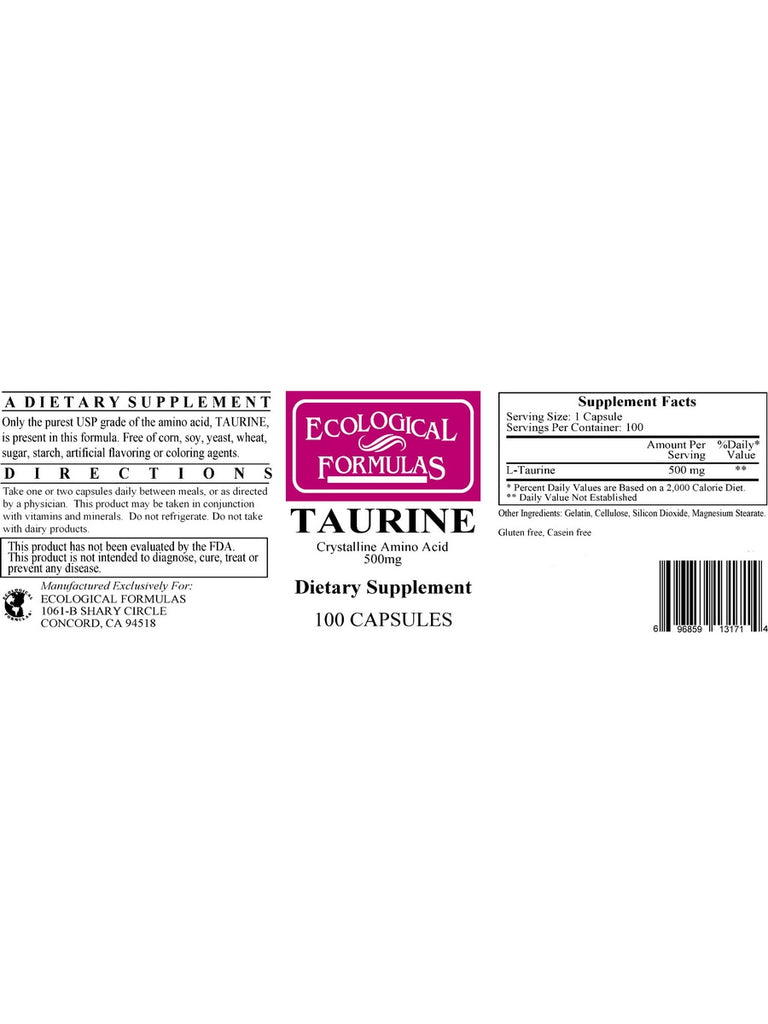 Ecological Formulas, Taurine, 500 mg, 100 Capsules