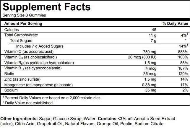 Immune support has never been tastier! Emergen-C Immune+ Super Orange Gummies are an excellent source of Vitamin C, Vitamin D, and Zinc.